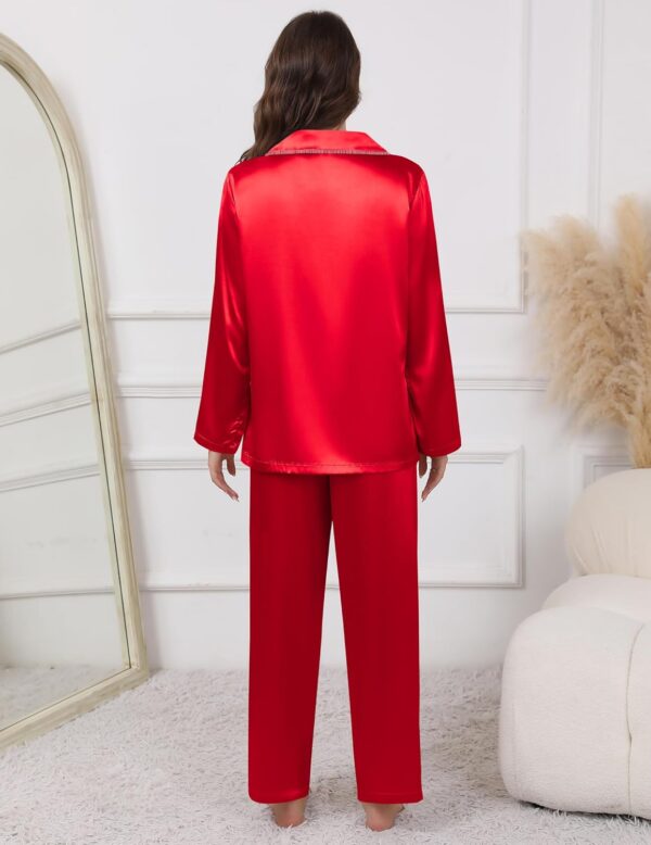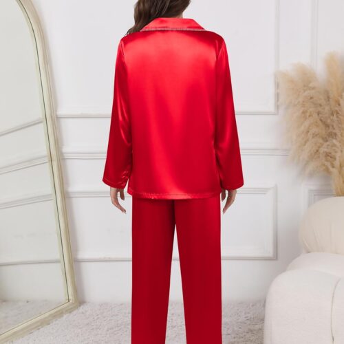 - Comfy Material:Silk pajama set is made of Premium 95%Polyester+5%Spandex satin fabric.Ultra Soft Silky Sleepwear,which is lightweight, breathable and skin-friendly, just like wrapped in a cloud, helping you have a sound sleep