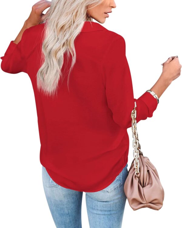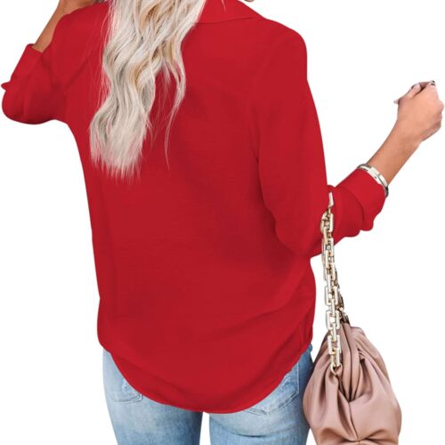 • Features: Sexy v-neckline, button up, cuffed sleeve, long sleeve. Classic shirt collar, basic plain women’s shirts