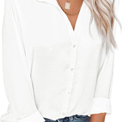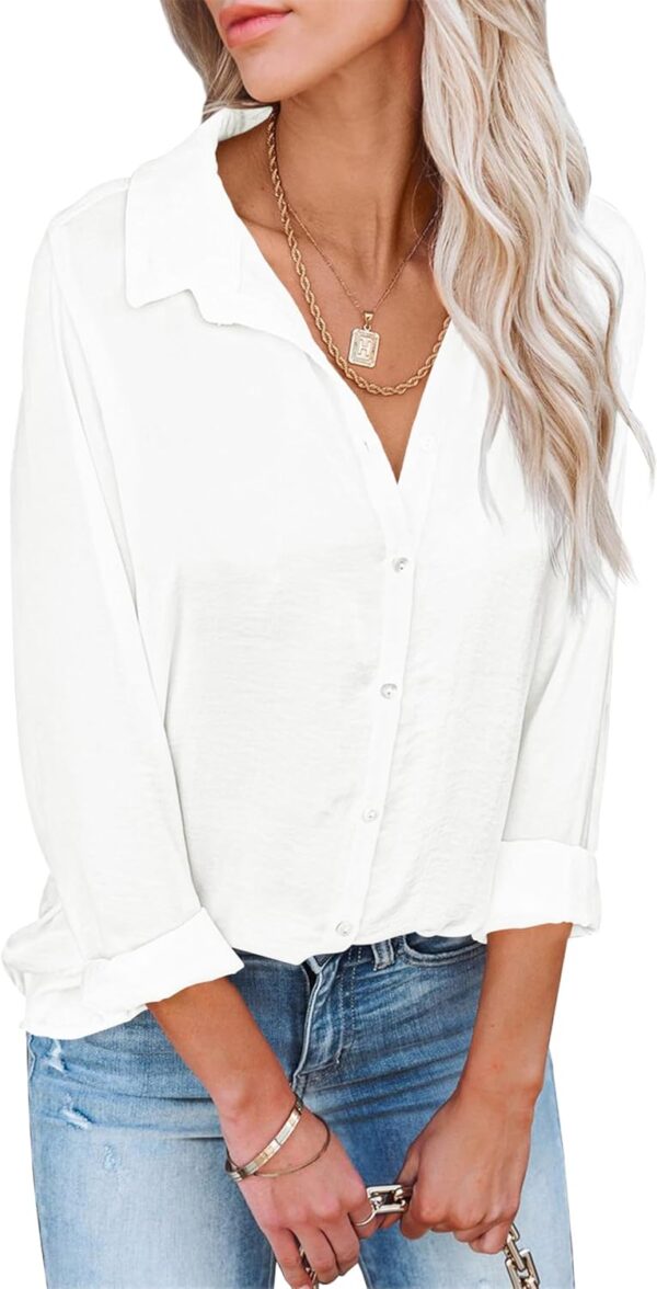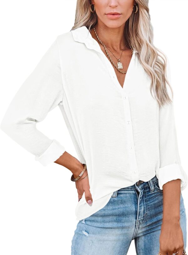 - Features: Sexy v-neckline, button up, cuffed sleeve, long sleeve. Classic shirt collar, basic plain women’s shirts