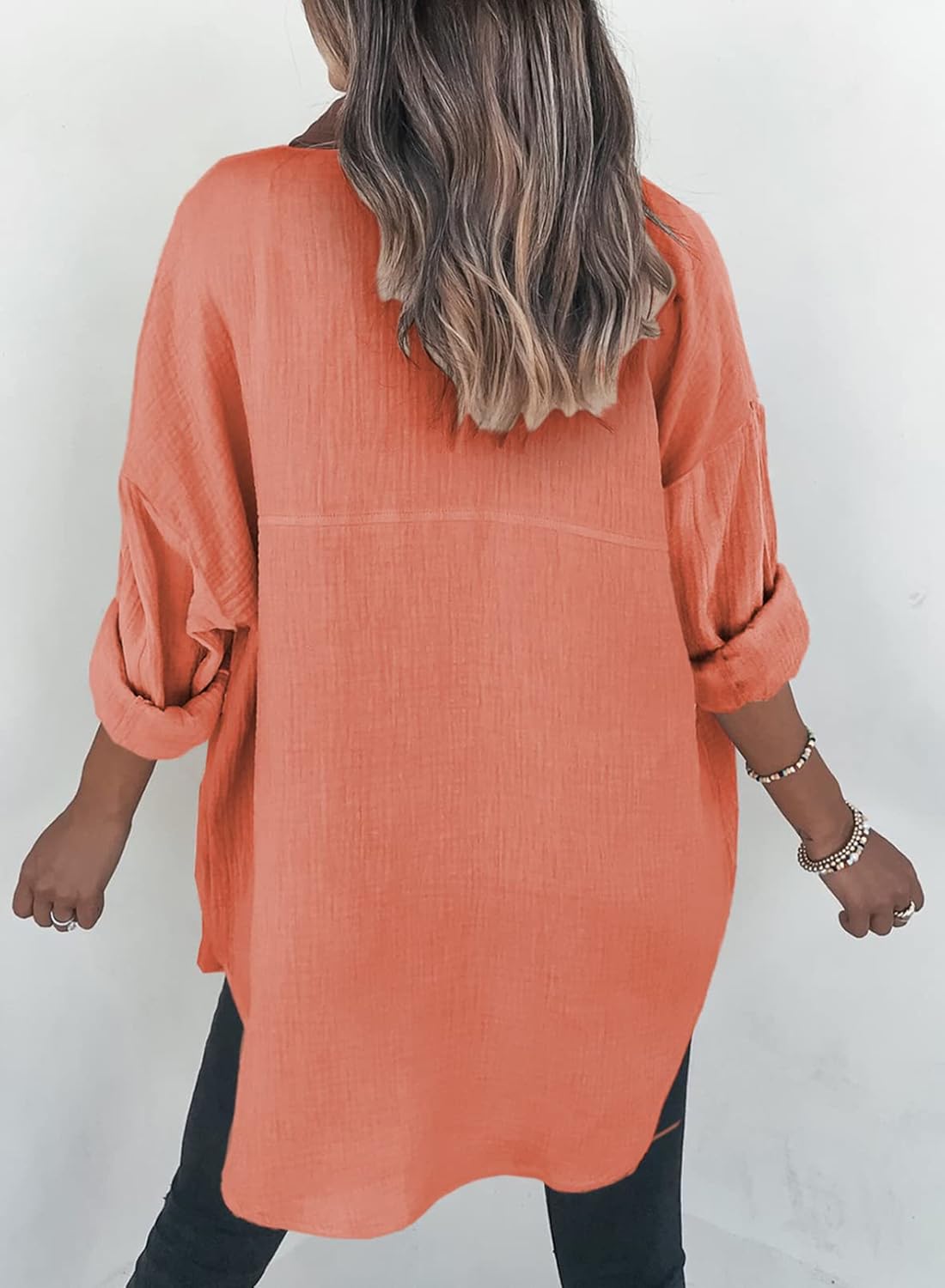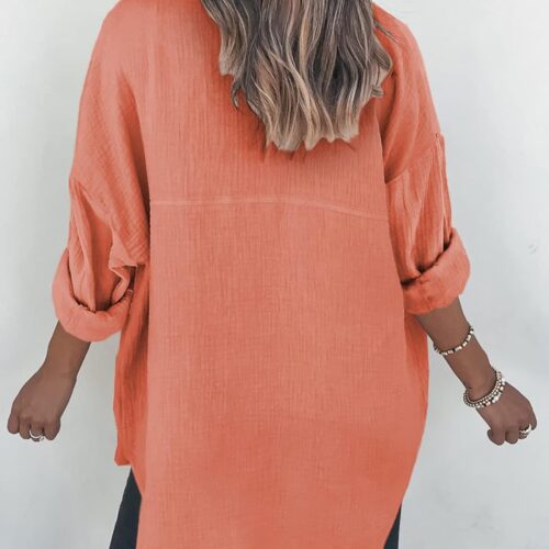 - Feature: Color block, Solid Color, Front Button Closures, Bust Pocket, Long Sleeves with Button Cuffs, wear as 3/4 sleeves or full sleeve, Turn-Down Collar, Boyfriend Style, Loose Fit Shirts