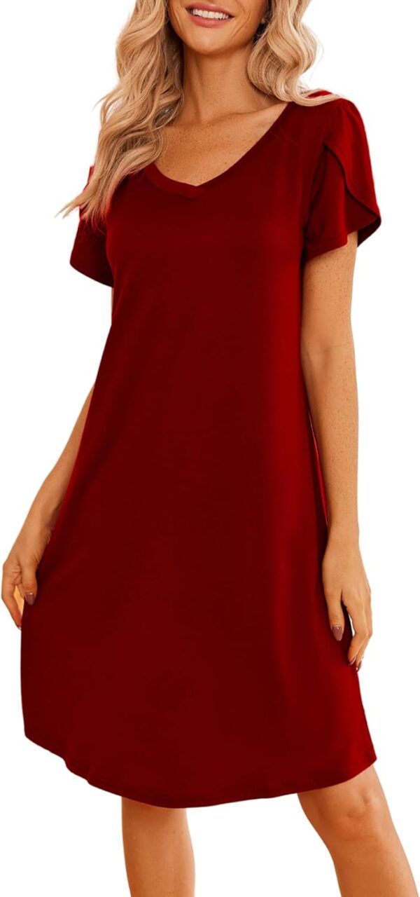 - Knee-length T-shirt pajamas dress with a relaxed fit and an A-line design that flatters your figure, this comfortable nightgown for adult women can adapt to almost every body shape.