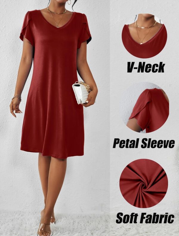 - The womens nightgown appears in a refreshing T-Shirt dress look. This shirt dress with its cuddly soft material provides wonderfully relaxed wearing comfort. Details such as the feminine v-neck, petal sleeves and solid color underline The casual urban look of women’s clothing.