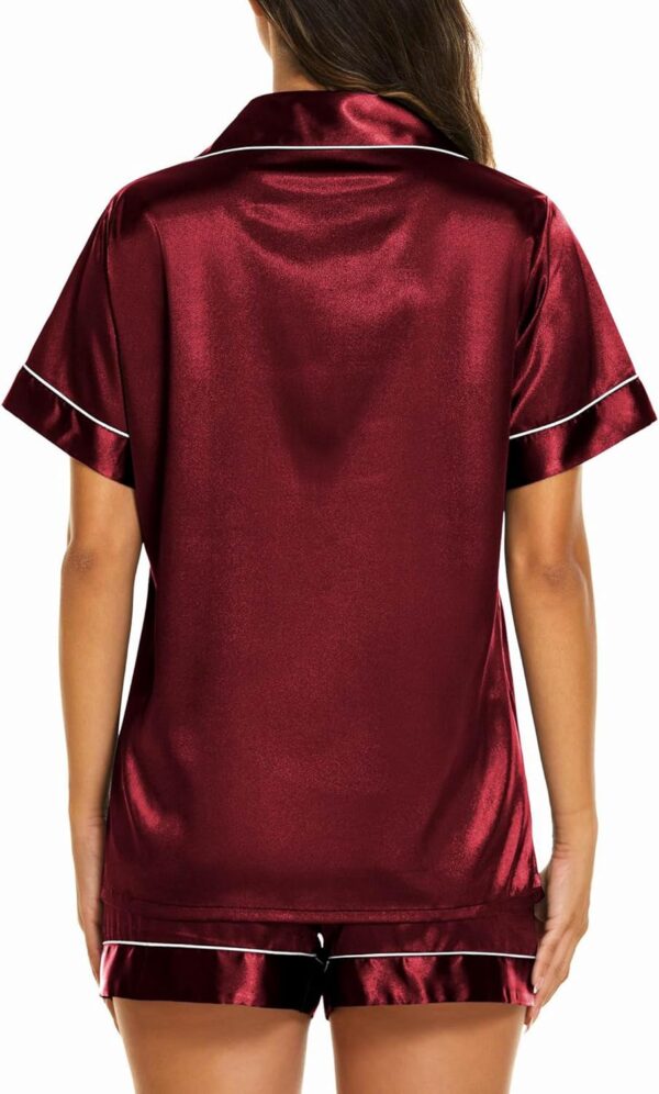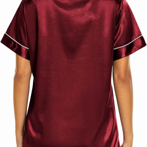 - Pajama Top:Short sleeve sleepwear with notch collar,button front pajamas shirt and one chest pocket design.Lightweight and Skin-friendly silk pajamas for women.Great for sleeping,casual wear or lounging around the house or yard all day