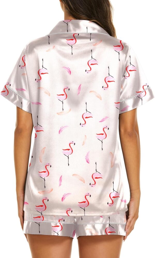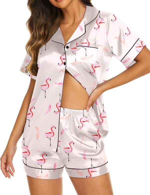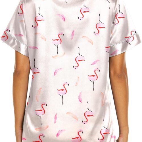 - Pajama Top:Short sleeve sleepwear with notch collar,button front pajamas shirt and one chest pocket design.Lightweight and Skin-friendly silk pajamas for women.Great for sleeping,casual wear or lounging around the house or yard all day