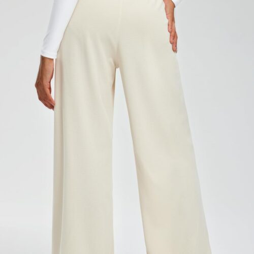 Women’s Wide Leg Pants 27″/29″ High Waisted Waffle Knit Casual Slacks Work Pants Business Palazzo Trousers with Pockets